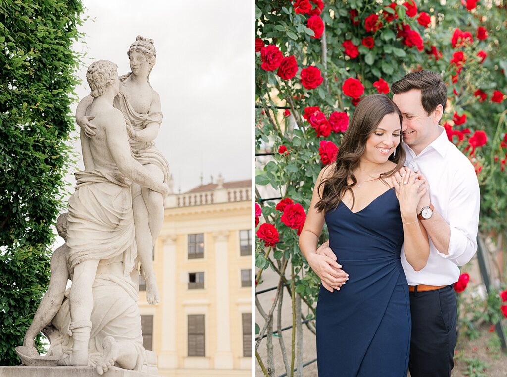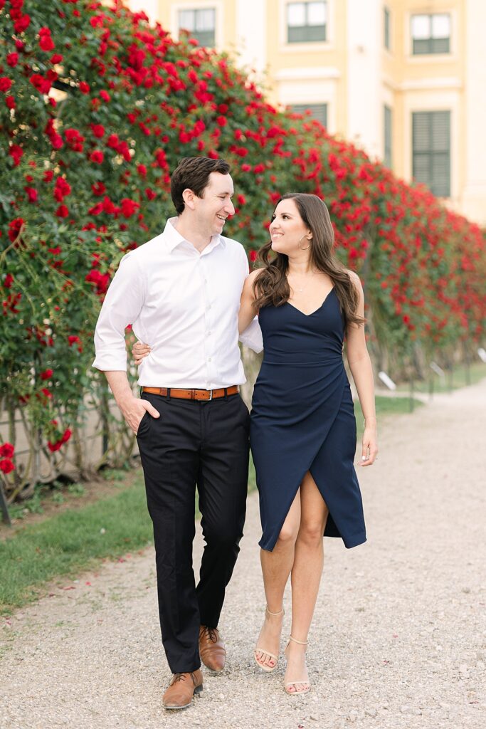 Working as a photographer in Vienna, I am lucky to meet amazing people all over the world. Taylor and Anthony had traveled all the way from New York to celebrate their anniversary in the city, and I was honored to be able to capture their special moments. After discussing the couple’s preferences and interests, we decided on the perfect location for the shoot. Taylor saw these photos of blooming red roses in Vienna, and luckily for us – it was exactly the perfect time for it. It was a perfect scene to capture photos that truly showcased their love and connection.
