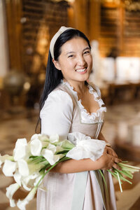 Ching and Liam’s wedding was held in one of Vienna’s most extraordinary venues—one of the oldest and most beautiful libraries in the world. Surrounded by towering shelves of historic books, they had the grand hall entirely to themselves, creating an intimate and unforgettable setting to share this special moment with their closest family.